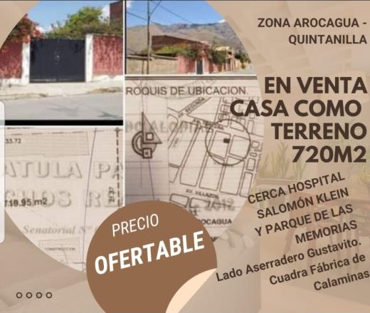 Venta casa como terreno con superficie util: 720m2 Superficie construida: 150m2 Gas natural, electricidad, agua Apto para proyectos de construcción residenciales o comerciales. A 10 minutos del centro. Sobre av. Asfaltada. A 2 cuadras del Hospital Salomón Klein A 7 cuadras del Parque de las Memorias. Lugar tranquilo rodeado de bancos, supermercados, colegios, etc.